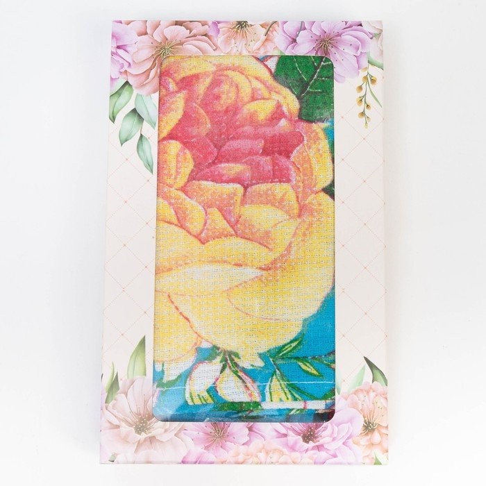 Полотенце в коробке 45×60 см, Английская роза, бирюза, вафля, 160 гр/м2, хлопок 100%