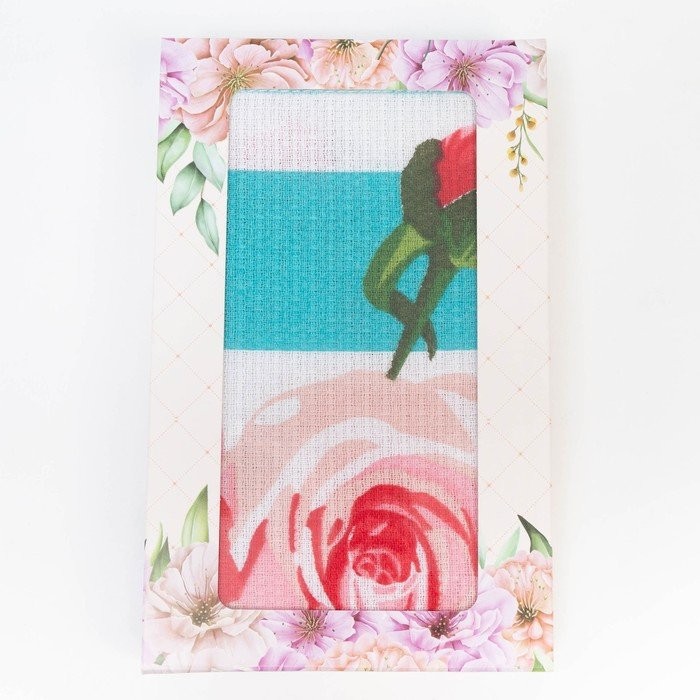 Полотенце в коробке 35×60 см, Полоса, бирюза, вафля, 160 гр/м2, хлопок 100%