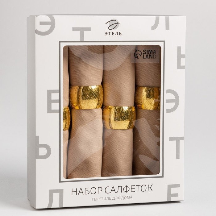 Набор салфеток с декорат. кольцами «Beige pleasure» 40×40 см — 4 шт, 100% хл, саржа 190гр/м2