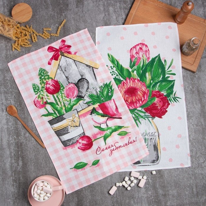 Набор кухонных полотенец Доляна «Самой заботливой», 35х60см-2шт, 100% хл