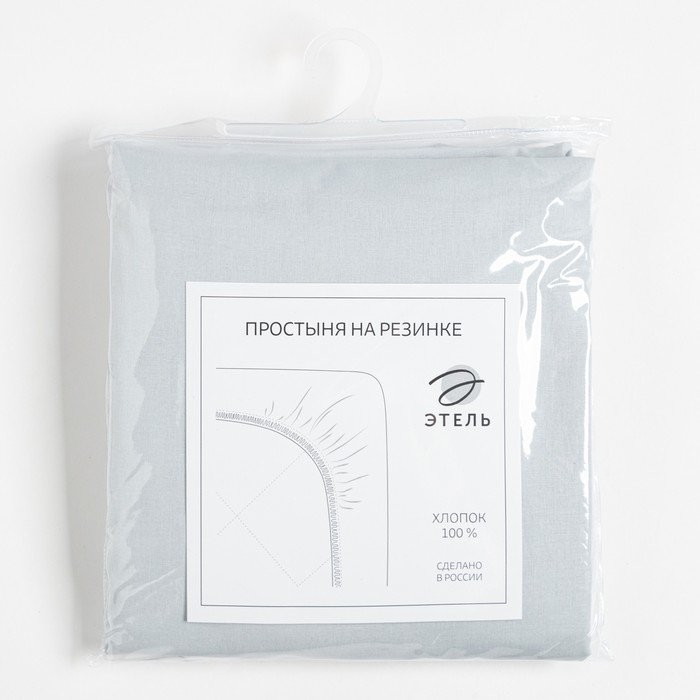 Простыня на резинке Этель 180*200*25 см, цв. светло-серый, 100% хлопок, ранфорс, 111 г/м²