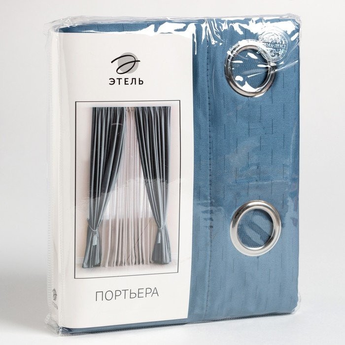 Штора портьерная Этель «Штрихи» цв.синий,на люверсах 250*265 см, 100% п/э