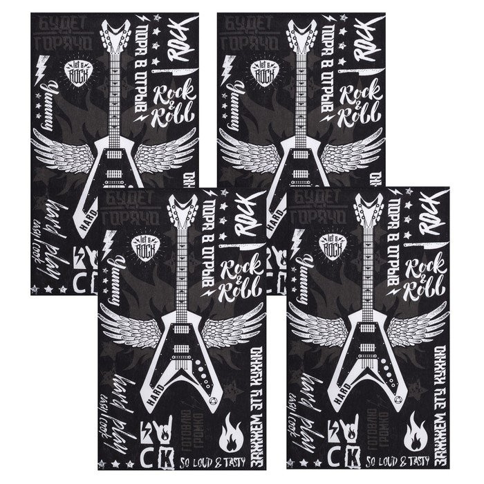 Набор кухонных полотенец Доляна Les’t rock, 35×60 см — 4 шт, 100% хл