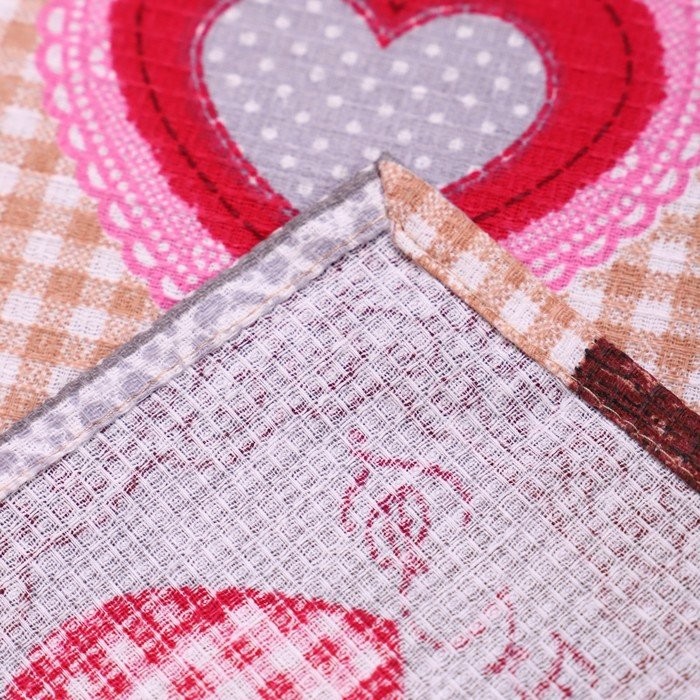 Полотенце 45×60 см, Сердца, вафля, 170 гр/м2, хлопок 100%
