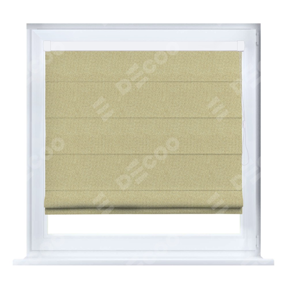 Римская штора производителя «Cortin», устанавливается на створку окна, пошита из ткани лён димаут песочный, артикул 16239. Штора шьётся по индивидуальным размерам, для данного типа римской шторы возможная ширина от 35 до 150 см., высота до 250 см.