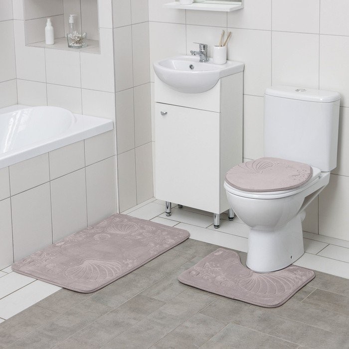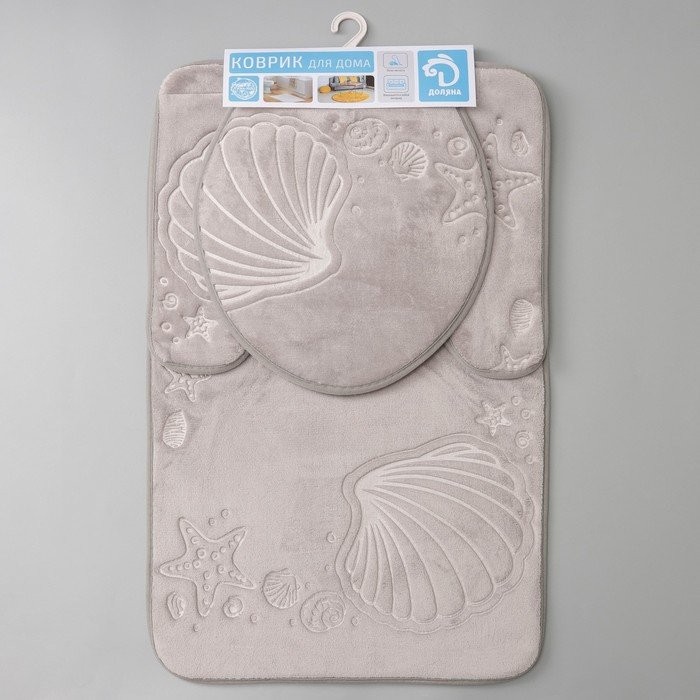 Набор ковриков для ванны и туалета Доляна «Морское дно», 3 шт: 50×80, 50×40, 38×43 см, цвет серый