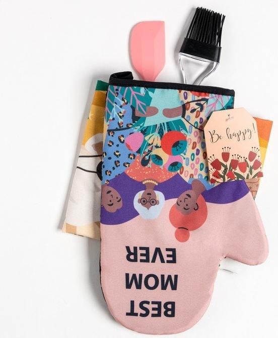 Набор подарочный Best MOM: полотенце, варежка-прихватка, кисть, лопатка