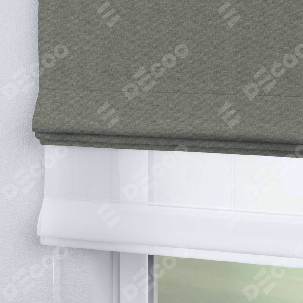 Римская штора день-ночь производителя «Cortin», используется для проёма, пошита из двух полотен, с лицевой стороны лён димаут стальной артикул 25, вторая ткань тюль (по стандарту комплектуется тюль белого цвета артикул V-01). Имеет универсальный механизм и подходит для монтажа: на потолок, на стену и в нишу.