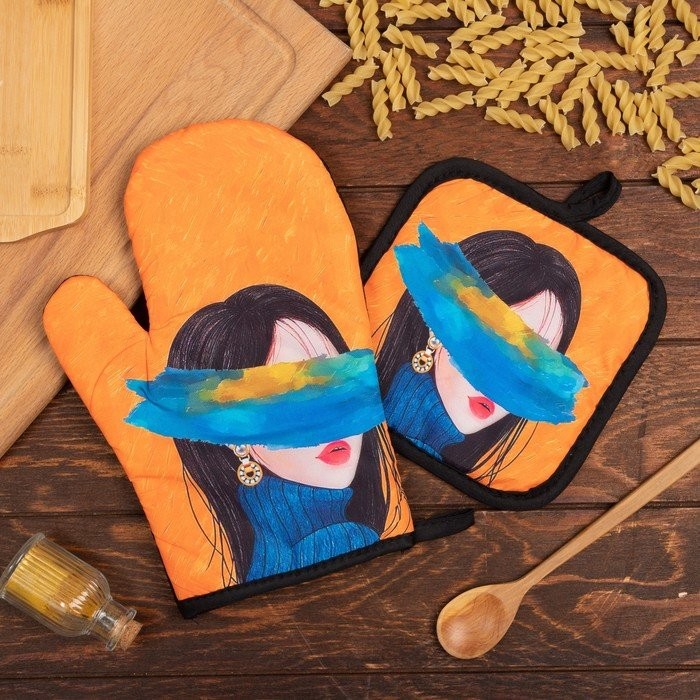 Кухонный набор (2 предмета) Этель «Искусство», прихватка 17×17 см, варежка 26×16 см, 100% п/э