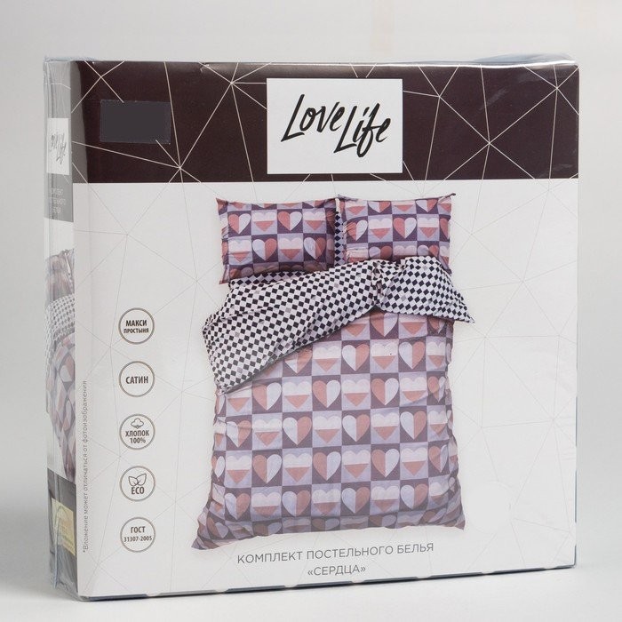 Постельное бельё LoveLife 2 сп «Сердца» 175х215см, 200х225см, 50х70см-2шт