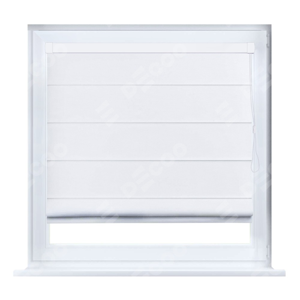 Римская штора кассетного типа, производителя «Cortin», устанавливается только на пластиковые окна и прилегает к стеклопакету, пошита из ткани вельвет дымчато-белый, артикул 85535.