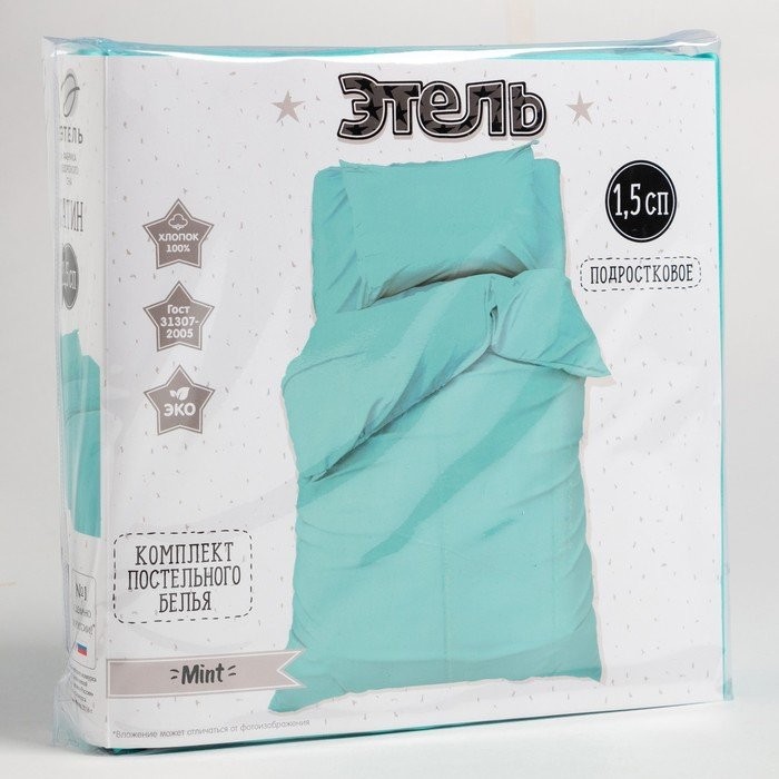 Постельное бельё Этель 1,5 сп «Mint» 143×215 см, 150×214 см, 50×70 см -1 шт, 100% хлопок, сатин