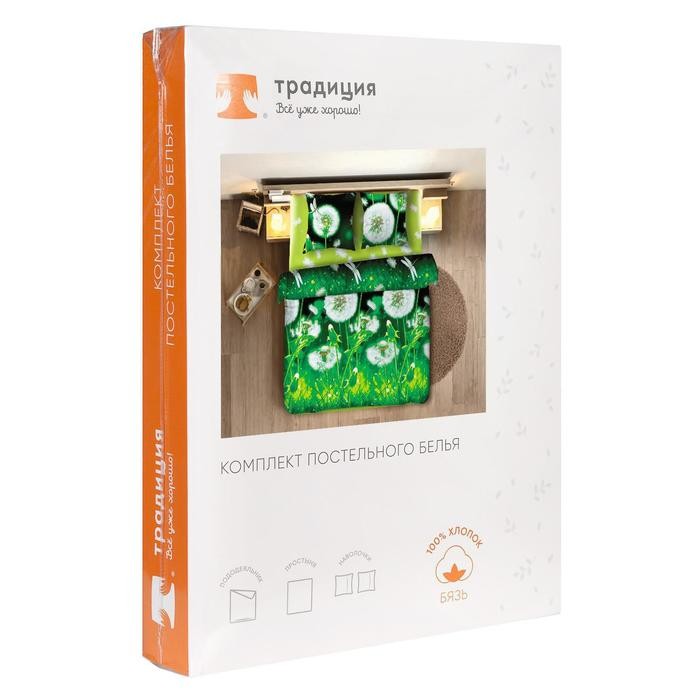 Постельное бельё «Традиция: Одуванчик», евро, 200×217 см, 220×240 см, 70×70 см. — 2 шт., бязь 125 г/м хл.100%