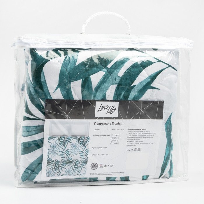 Покрывало LoveLife 1.5 сп Tropics 150*210±5 см, новосатин,80 г/м2