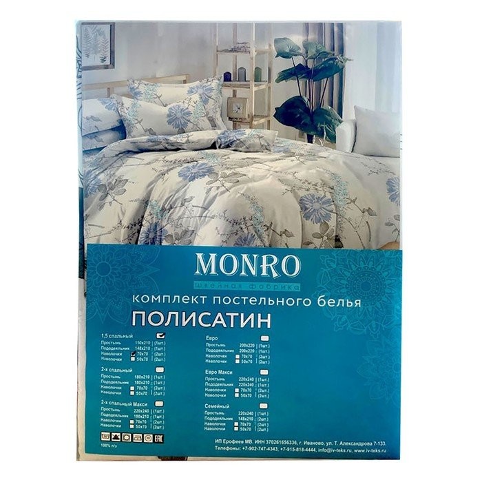 Постельное бельё Monro 1,5сп, 150×210, 150×210, 70х70см 2шт полисатин 80г/м, пэ100%