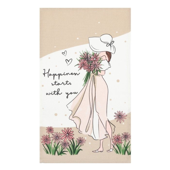 Набор кухонных полотенец Доляна Happiness, 35×60 см -2 шт, 100% хл, вафля 160 г/м2