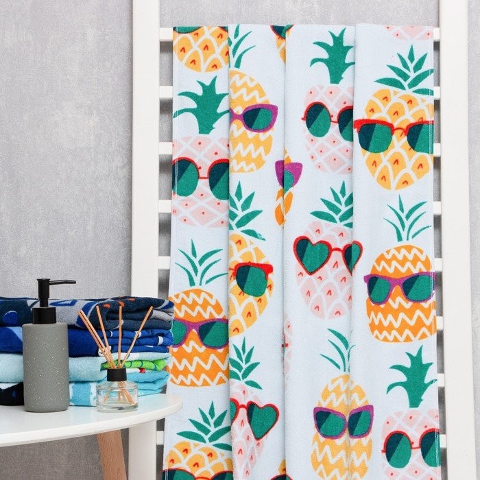 Полотенце Love Life «Ананасы» 70*140 см, велюр/махра 340гр/м2, 100% хлопок