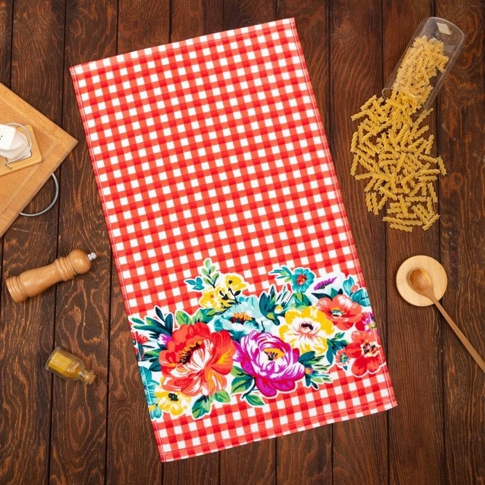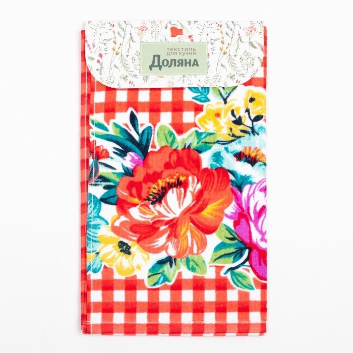 Полотенце кухонное Доляна «Цветы», 40×70±5 см, велюр/махра