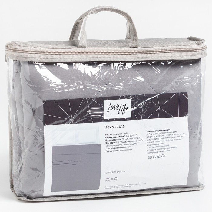 Покрывало LoveLife Евро 200×210±5 см, цвет серый, микрофайбер, 100% п/э