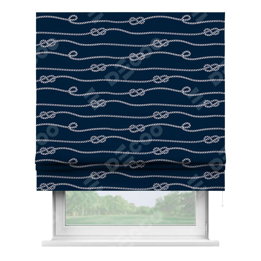 Римская штора производителя «Cortin», используется для проёма, пошита из ткани блэкаут с нанесением сублимационной печати «Морской узел». Имеет универсальный механизм и подходит для монтажа: на потолок, на стену и в нишу.