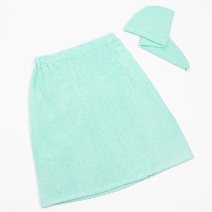 Набор для сауны Экономь и Я: полотенце-парео 68*150см + чалма, цв.св-бирюзовый,100%хл,320 г/м2