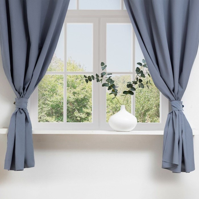 Комплект штор д/кухни с подхватами Этель Kitchen, цв. синий, 150×180 см — 2 шт