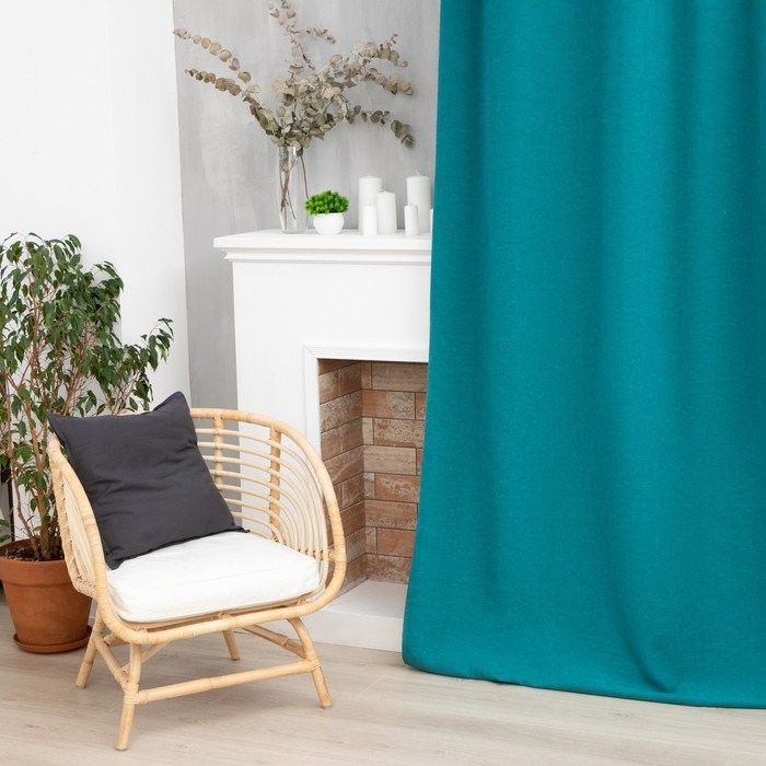 Штора портьерная Этель «Структурная», цвет синий, на шторной ленте, 250×265 см, 100% п/э