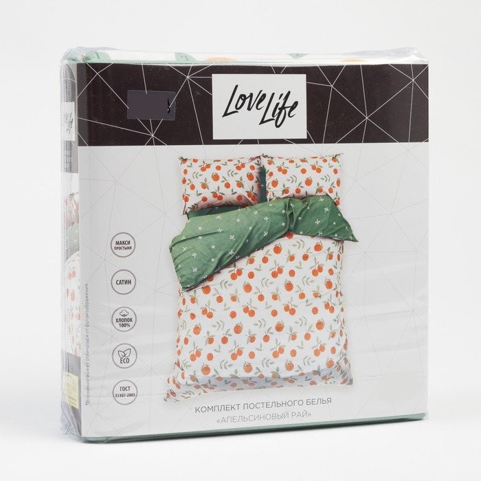 Постельное бельё LoveLife 2сп «Апельсиновый рай» 175×215 см, 200×225 см, 50х70см-2шт, 100%хлопок, сатин, 125г/м