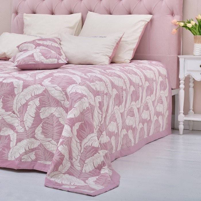 Покрывало хлопковое Этель «Перья» 220×240 см, цвет фиолетовый, 100% хлопок, 300гр/м2