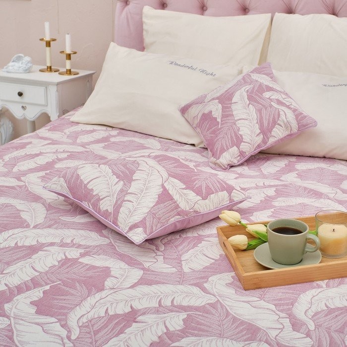 Покрывало хлопковое Этель «Перья» 180×240 см, цвет фиолетовый, 100% хлопок, 300гр/м2