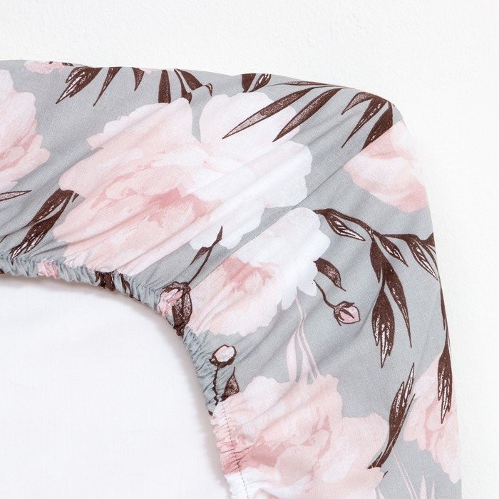 Простыня на резинке Этель 160х200×25 см, Peonies, 100% хлопок, поплин,125 г/м2