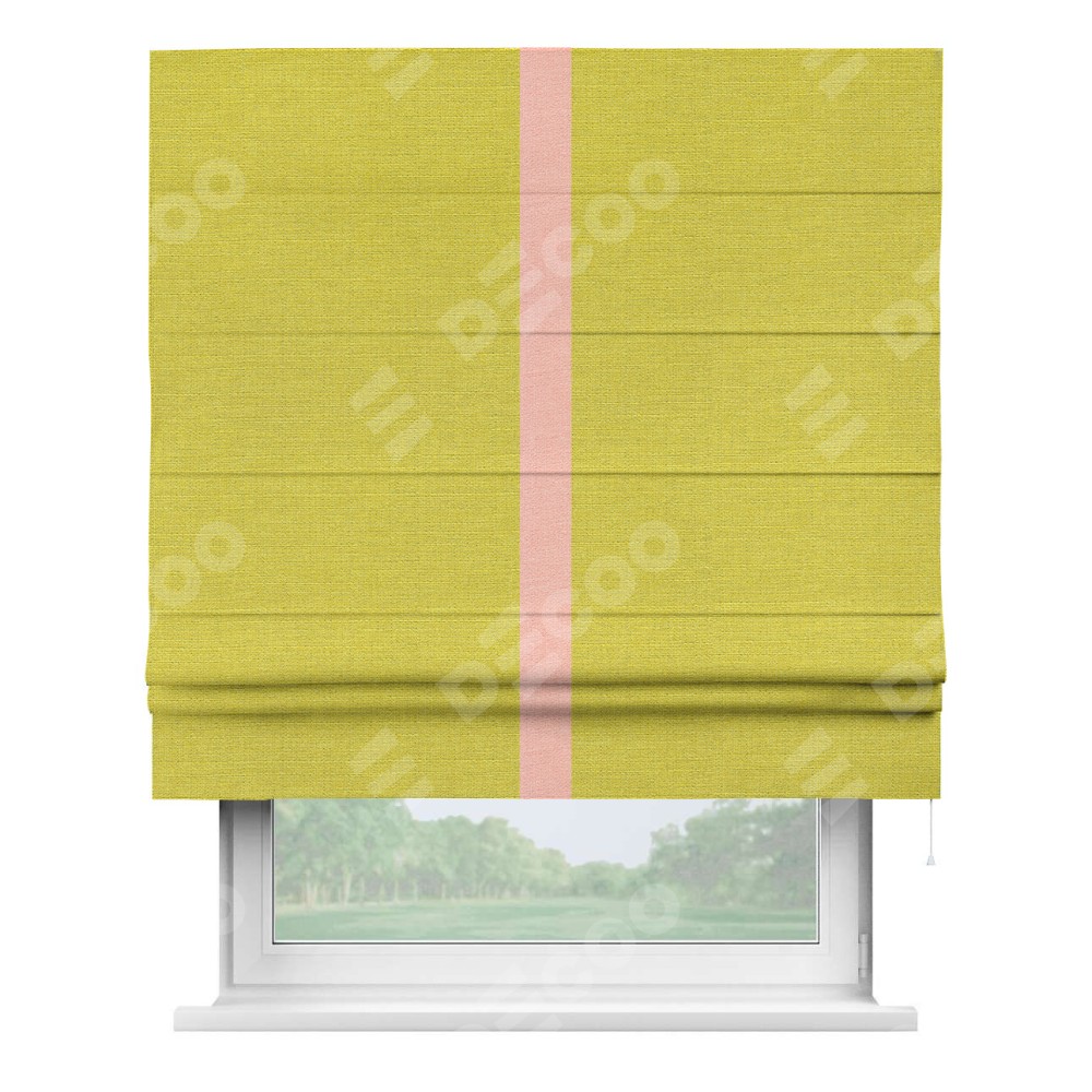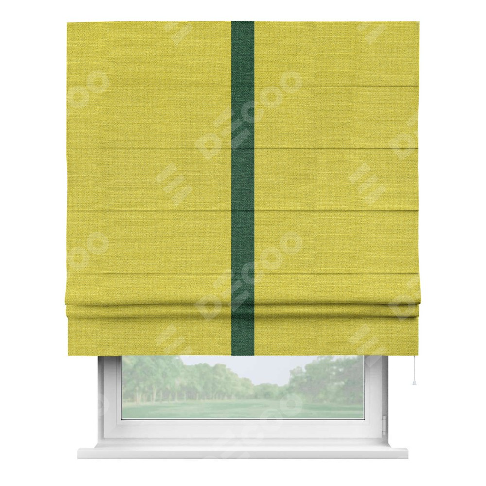 Римская штора «Кортин» с кантом Хайвэй, для проема, ткань лён салатовый