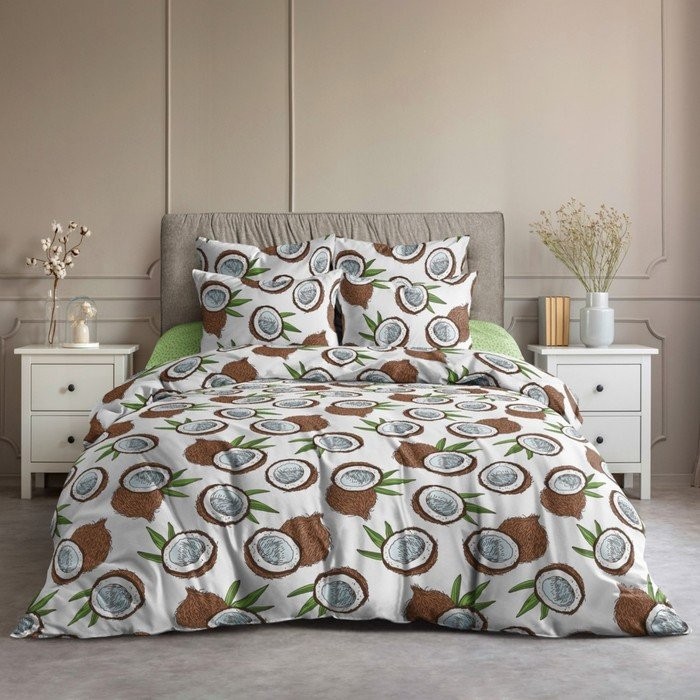 Постельное бельё Евро Ночь Нежна Кокосы 220×200 см, 220×200 см, 70×70 см 2шт, бязь, 120г/м², 100% хлопок