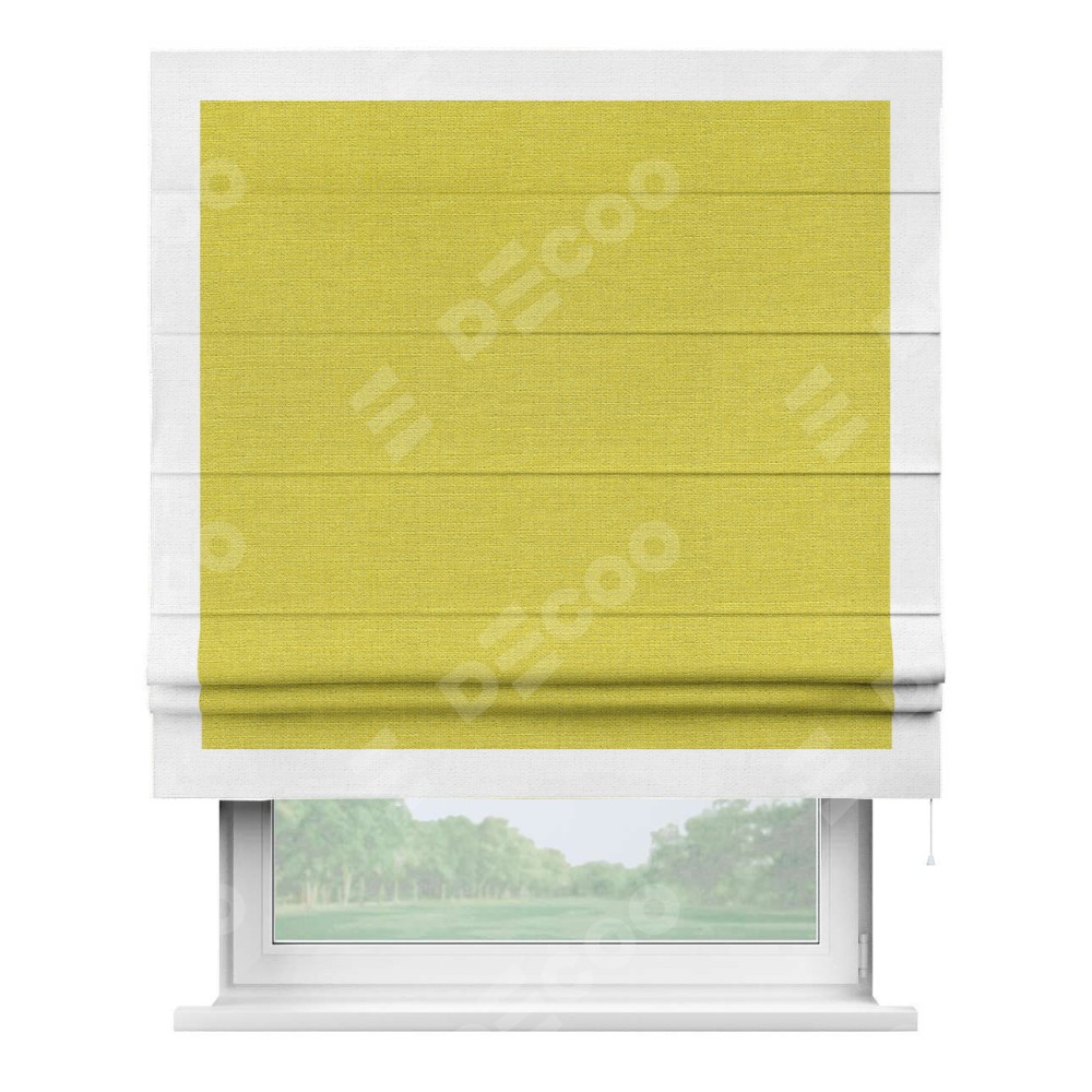Римская штора «Кортин» с кантом Чесс, для проема, ткань лён салатовый