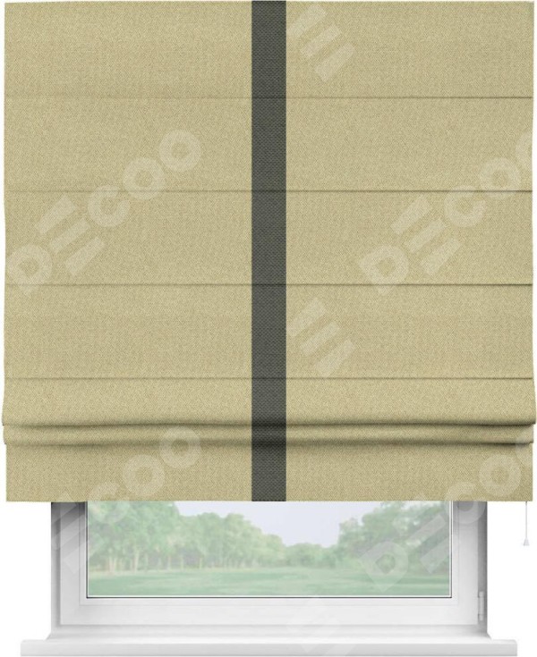 Римская штора «Кортин» с кантом Хайвэй, для проема, ткань лён димаут, песочный