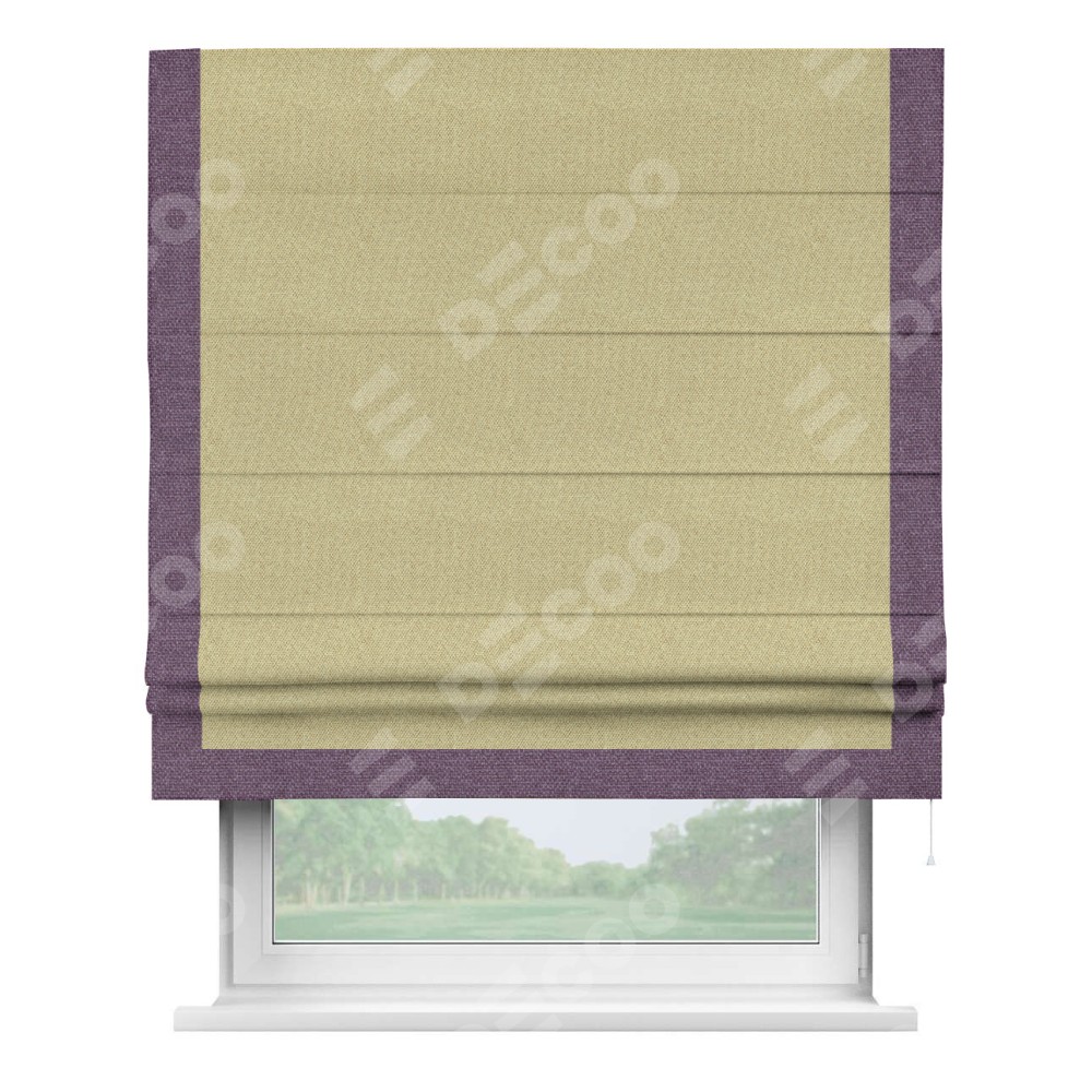 Римская штора «Кортин» с кантом Виктория, для проема, ткань лён димаут, песочный