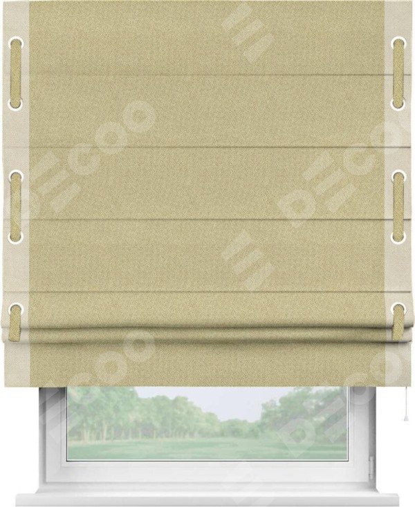 Римская штора «Кортин» с кантом Стрим Дуо (люверсы с пояском), для проема, ткань лён димаут, песочный
