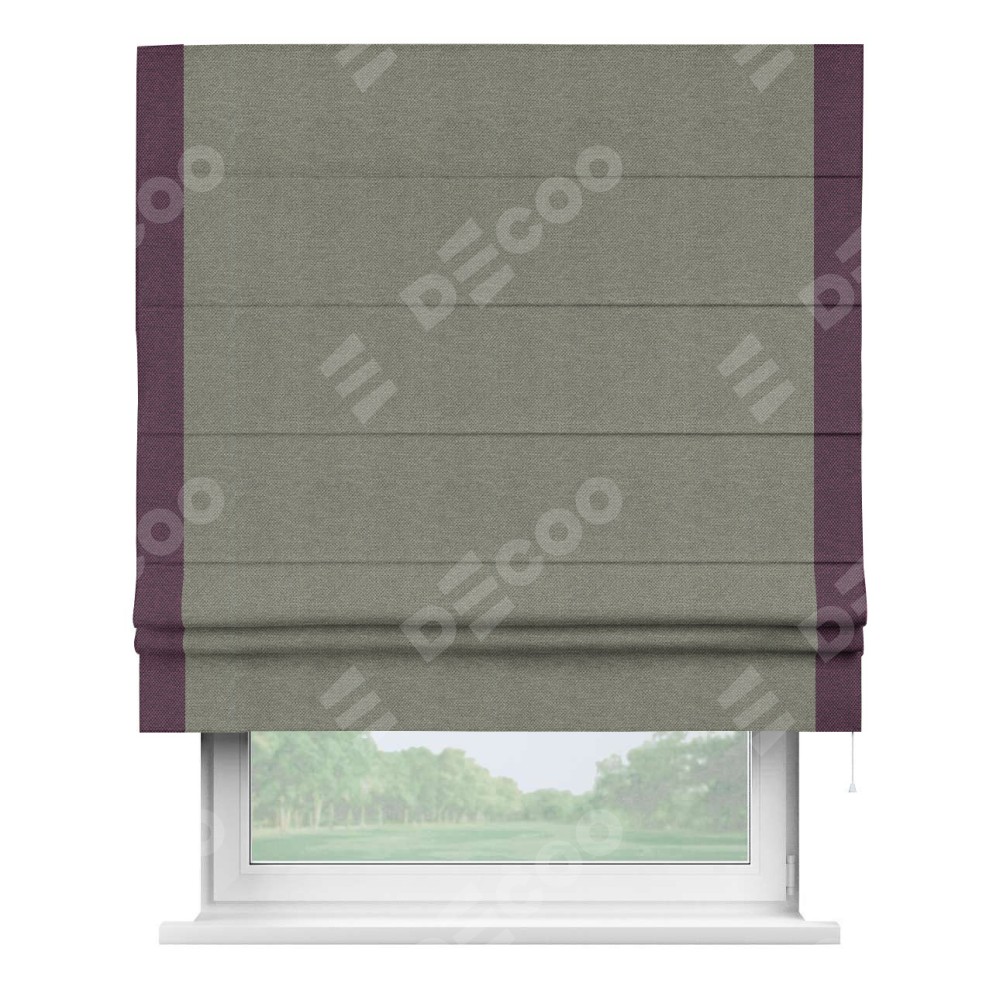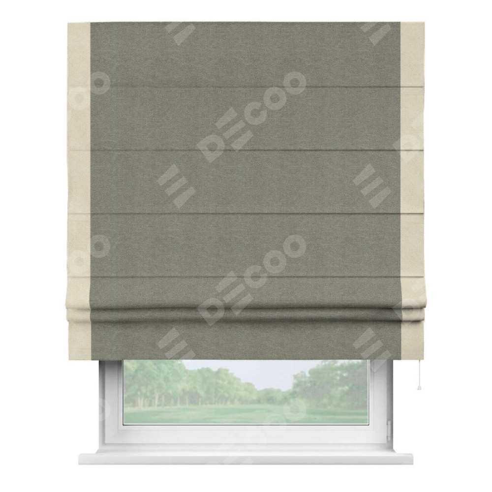 Римская штора «Кортин» с кантом Стрим Дуо, для проема, ткань лён димаут, стальной