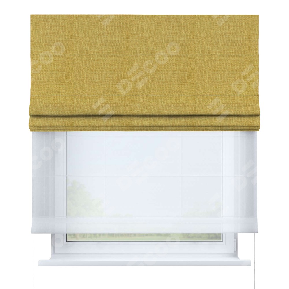 Римская штора «Кортин» день-ночь, ткань лён горчичный