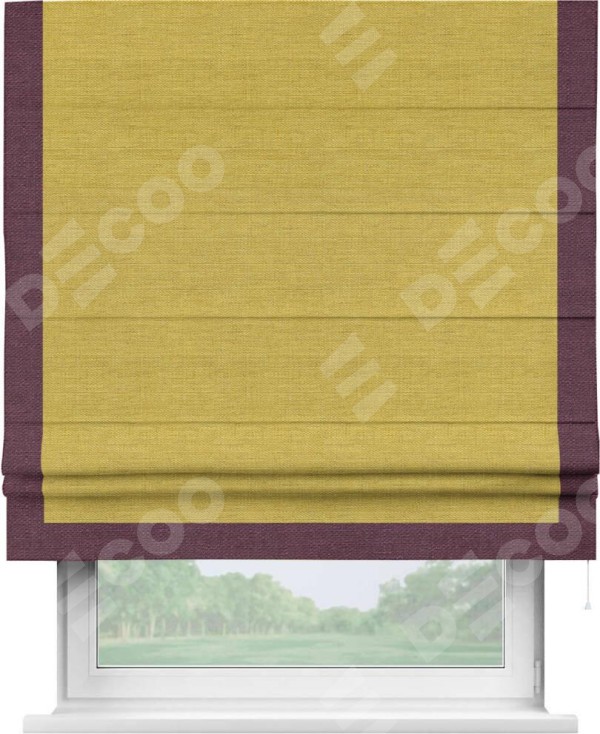 Римская штора производителя «Cortin», используется для проёма, пошита из ткани лён светло-салатовый, артикул 53438. Отделка шторы кантом «Виктория», ткань для канта используется из льна разной расцветки на выбор. Имеет универсальный механизм и подходит для монтажа: на потолок, на стену и в нишу.