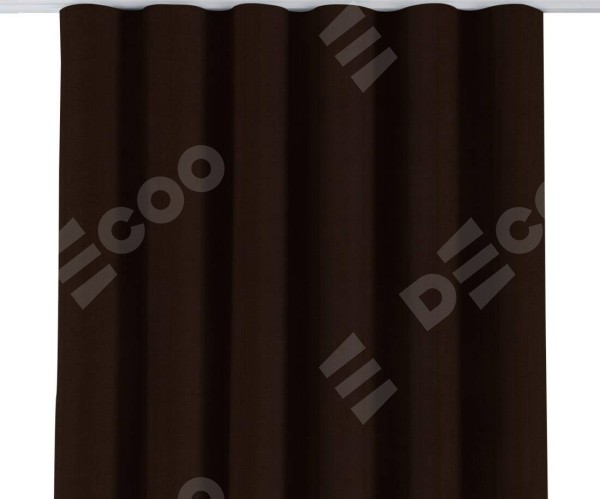 Комплект прямых штор, от производителя «Cortin», пошиты из ткани блэкаут однотонный тёмно-коричневый, артикул ткани 88287. С изнаночной стороны в верхней части штор пристрачивается шторная лента с декоративными складками «Волна». Для создания элегантных складок прямые шторы шьются по стандарту с коэффициентом 1:2 (на 100 см. ширины проёма 200 см. ширины ткани).