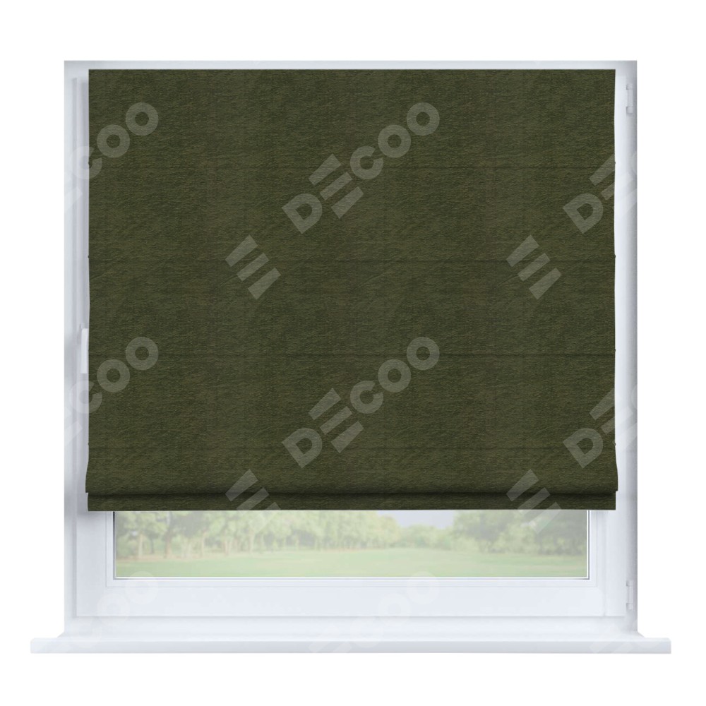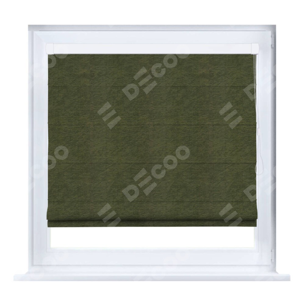 Римская штора производителя «Cortin», устанавливается на створку окна, пошита из ткани софт однотонный зелёный, артикул 33110. Штора шьётся по индивидуальным размерам, для данного типа римской шторы возможная ширина от 35 до 150 см., высота до 250 см.
