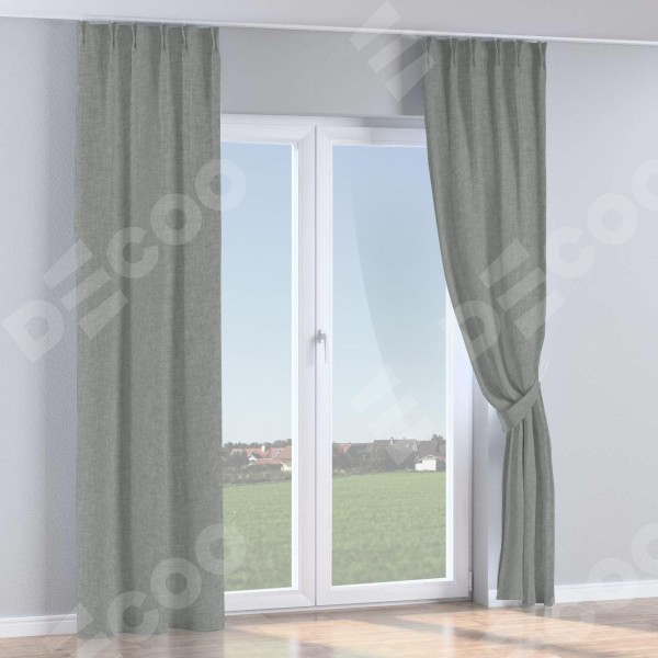 Комплект прямых штор, от производителя «Cortin», пошиты из ткани рогожка димаут тёмно-серый, артикул ткани 80418. С изнаночной стороны в верхней части штор пристрачивается шторная лента с декоративными складками «Кустик». Для создания элегантных складок прямые шторы шьются по стандарту с коэффициентом 1:2 (на 100 см. ширины проёма 200 см. ширины ткани).