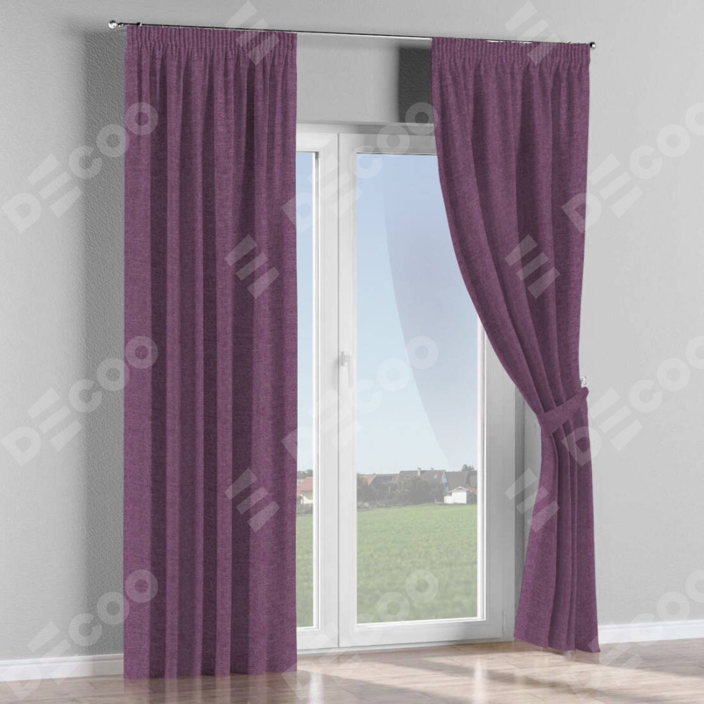 Комплект прямых штор, от производителя «Cortin», пошиты из ткани лён димаут брусника, артикул ткани 16. С изнаночной стороны в верхней части штор пристрачивается шторная лента с декоративными складками «Карандаш». Для создания элегантных складок прямые шторы шьются по стандарту с коэффициентом 1:2 (на 100 см. ширины проёма 200 см. ширины ткани).