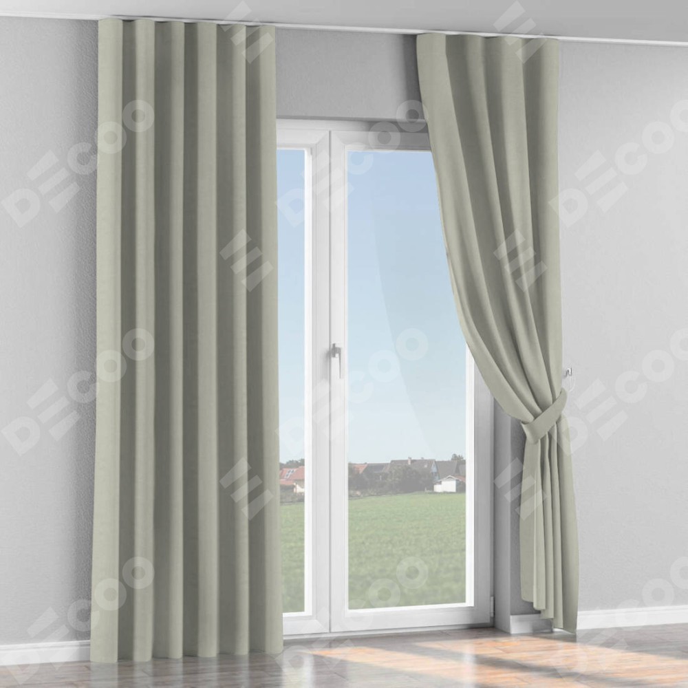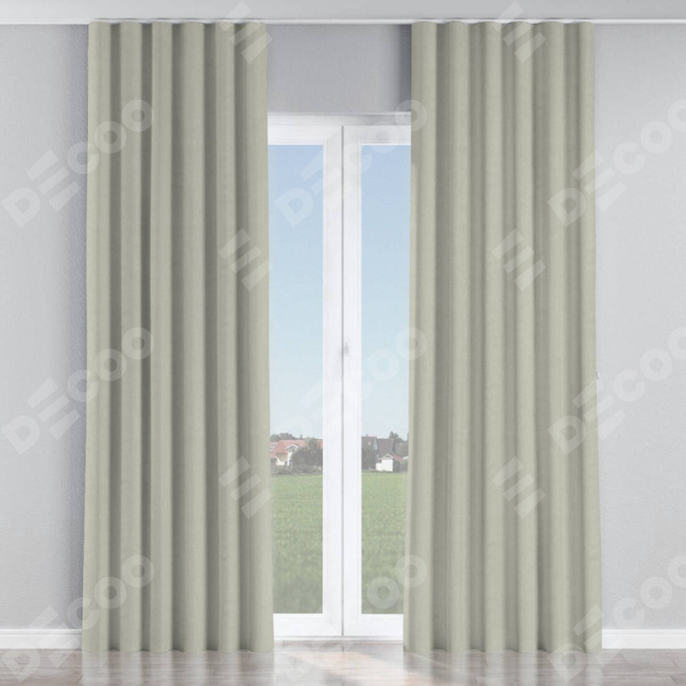 Комплект прямых штор, от производителя «Cortin», пошиты из ткани лён димаут светло-серый, артикул ткани 83025. С изнаночной стороны в верхней части штор пристрачивается шторная лента с декоративными складками «Волна». Для создания элегантных складок прямые шторы шьются по стандарту с коэффициентом 1:2 (на 100 см. ширины проёма 200 см. ширины ткани).