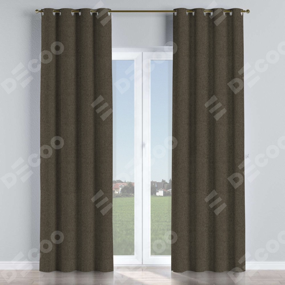 Комплект прямых штор, от производителя «Cortin», пошиты из ткани твид блэкаут тёмно-коричневый, артикул ткани 21584. Данная модель пошита на люверсах, комплектуется на выбор круглым карнизом и подходит для монтажа на стену или потолок. Прямые шторы на люверсах шьются по стандарту с коэффициентом 1/2 (на 100 см. ширины проёма 200 см. ширины ткани), отличительным преимуществом данной модели является простой способ монтажа. Достаточно повесить ее на трубу и штора готова!