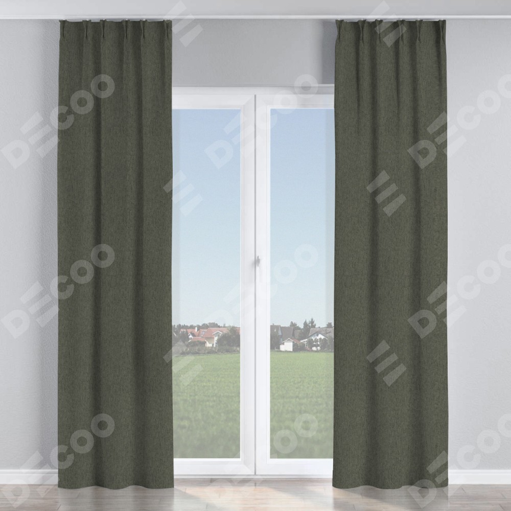 Комплект прямых штор, от производителя «Cortin», пошиты из ткани твид блэкаут тёмно-серый, артикул ткани 21587. С изнаночной стороны в верхней части штор пристрачивается шторная лента с декоративными складками «Кустик». Для создания элегантных складок прямые шторы шьются по стандарту с коэффициентом 1:2 (на 100 см. ширины проёма 200 см. ширины ткани).
