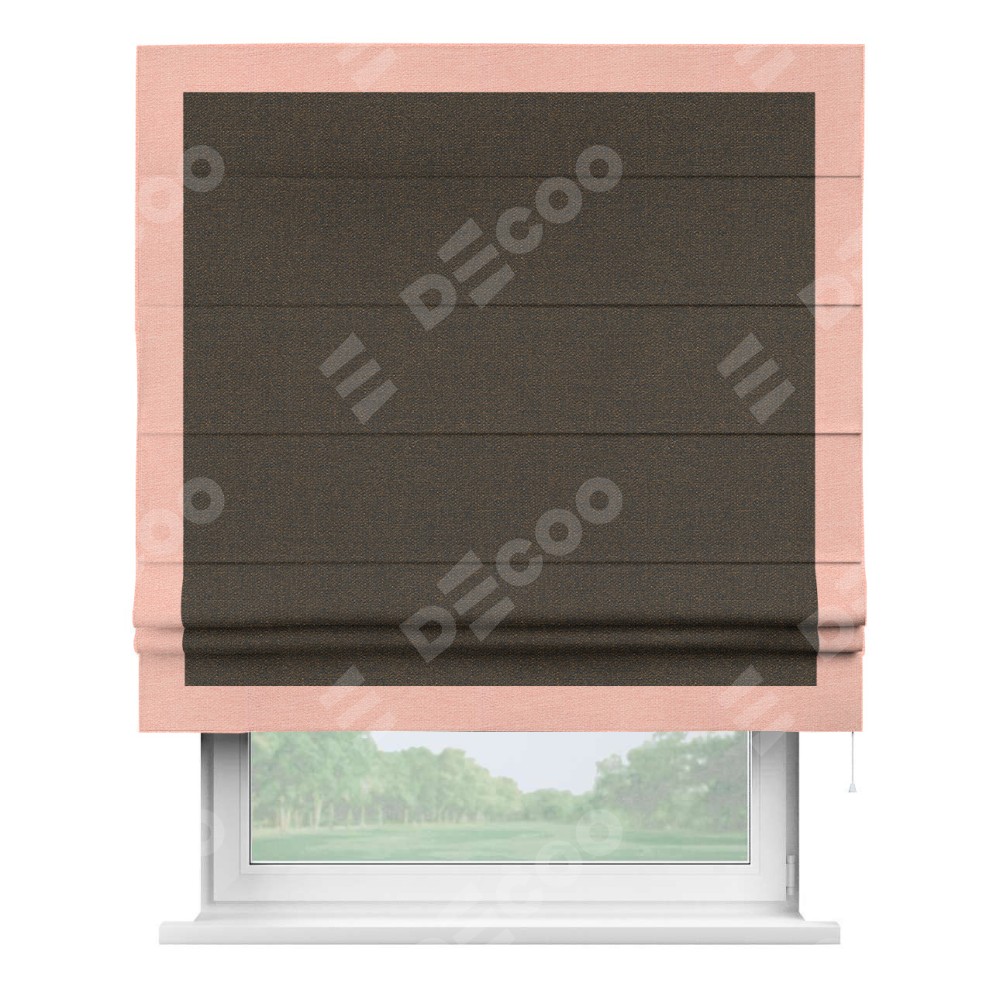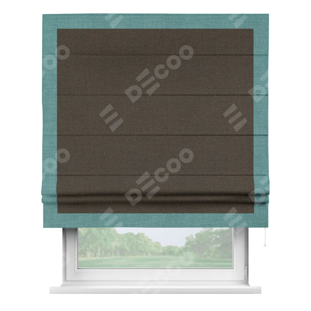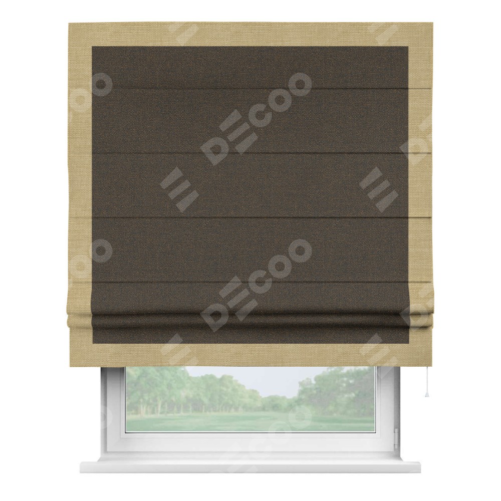 Римская штора «Кортин» с кантом Чесс, для проема, ткань лён темно-коричневый