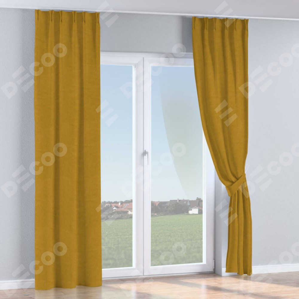 Комплект прямых штор, от производителя «Cortin», пошиты из ткани вельвет светло-коричневый, артикул ткани 4973. С изнаночной стороны в верхней части штор пристрачивается шторная лента с декоративными складками «Кустик». Для создания элегантных складок прямые шторы шьются по стандарту с коэффициентом 1:2 (на 100 см. ширины проёма 200 см. ширины ткани).