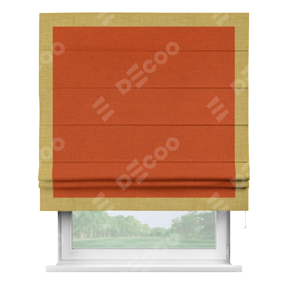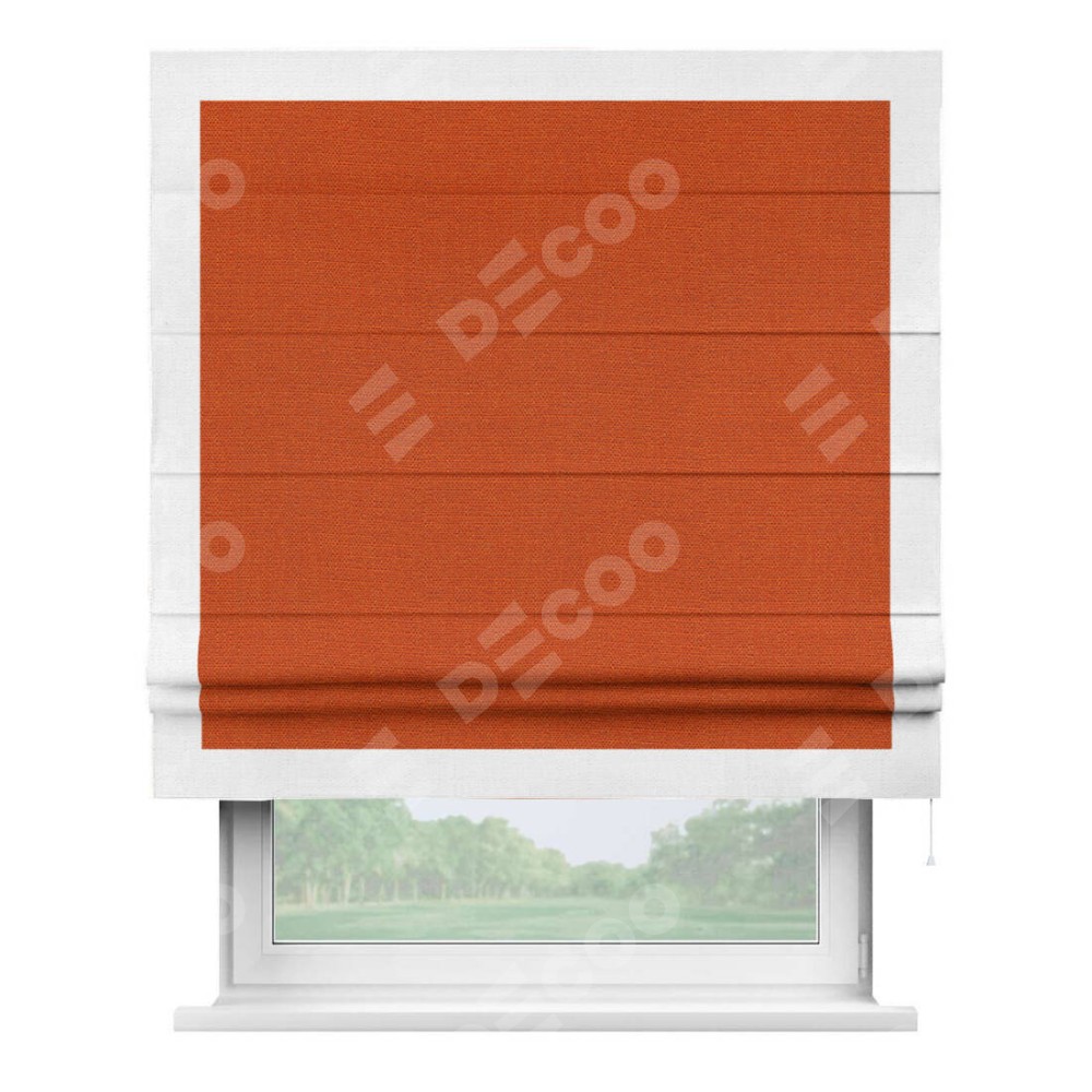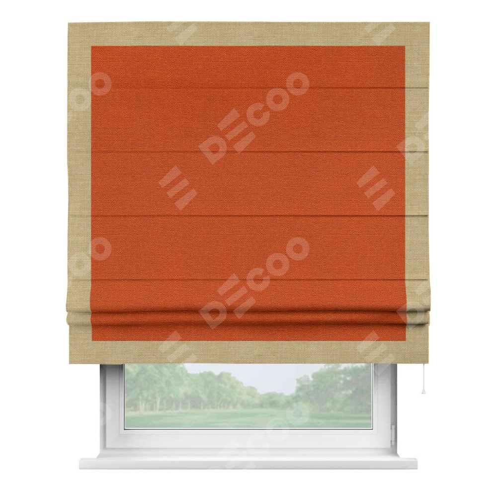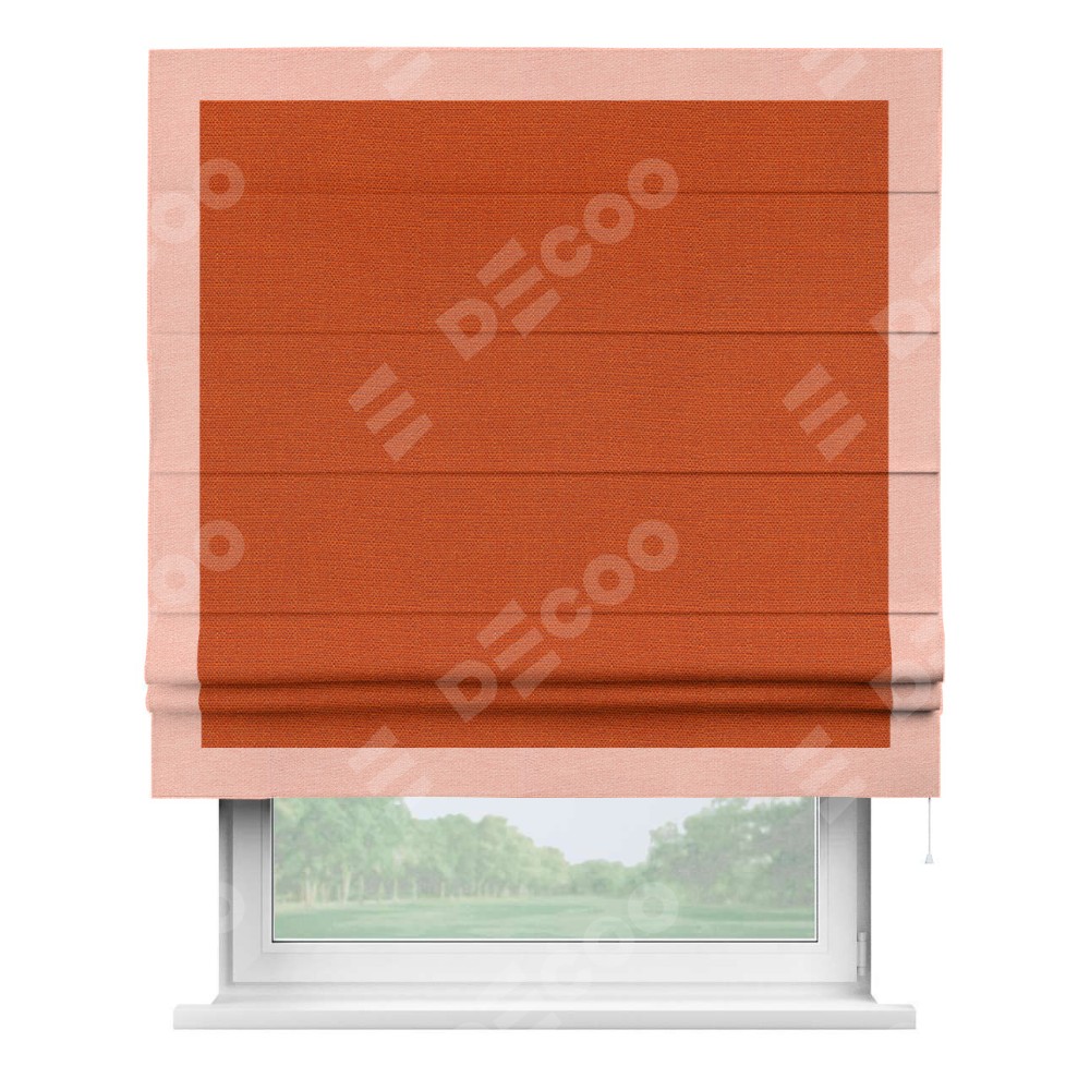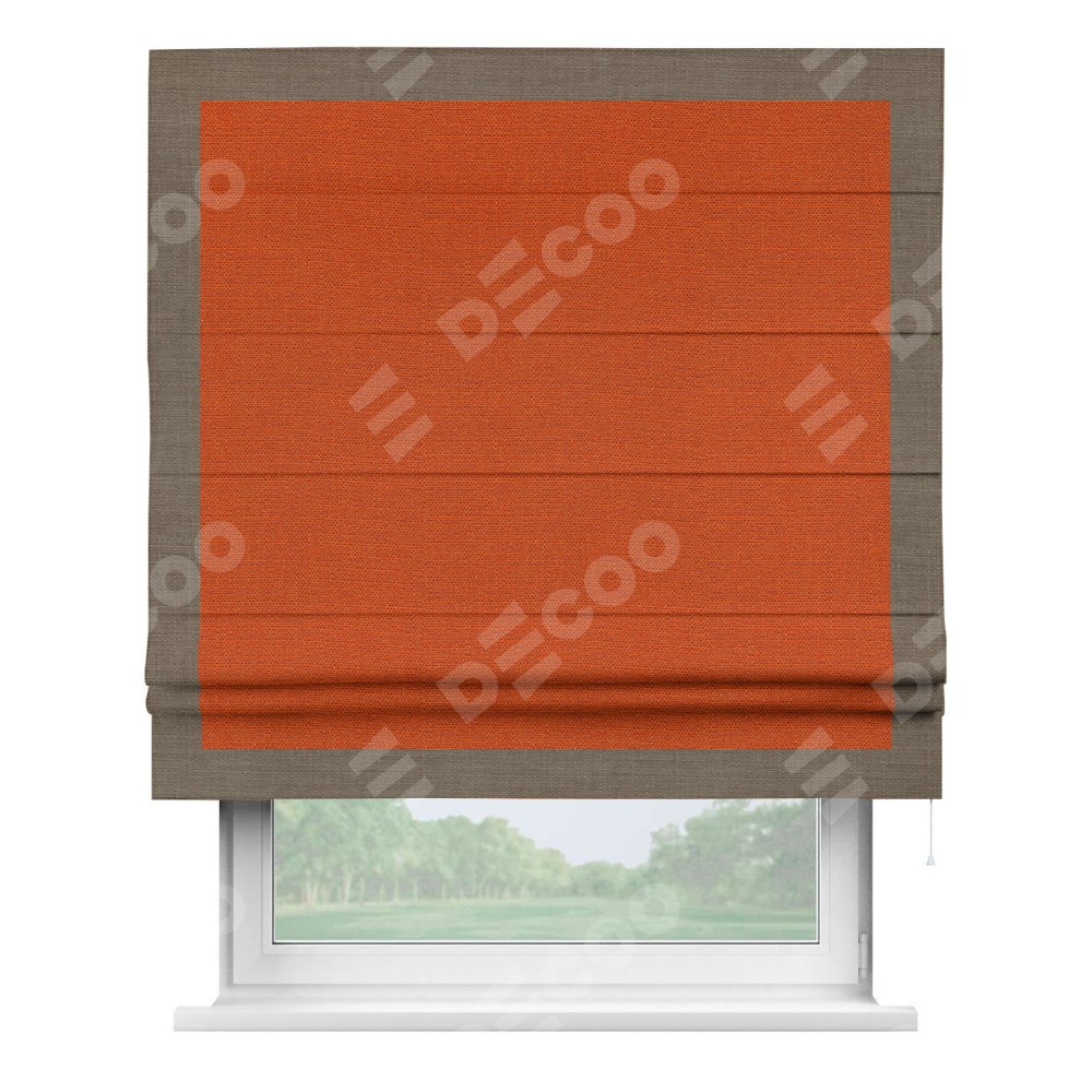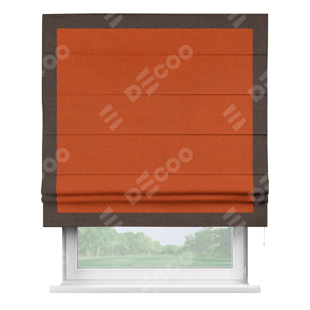Римская штора «Кортин» с кантом Чесс, для проема, ткань лён терракотовый